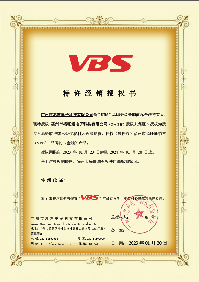 VBS會議音響產(chǎn)品經(jīng)銷授權(quán)
